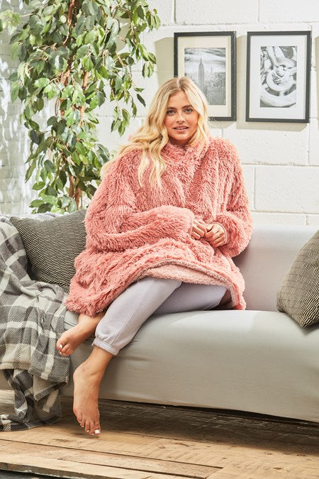 oversized cosy reversible shaggy sherpa hoodie