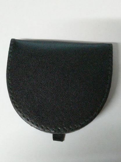 Black Real Leather Coin Tray Purse with easy open tab