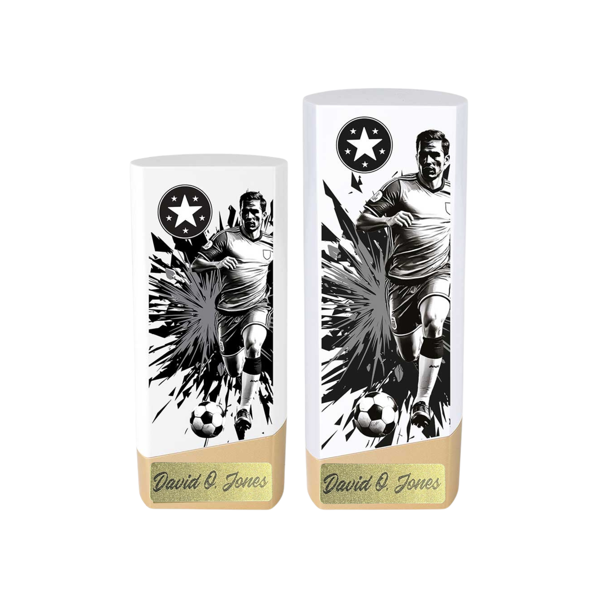 This trophy includes a FREE personalised matt gold or matt silver sticker with your custom text, professionally applied before dispatch. Please leave your required wording and your choice of sticker colour (matt gold or matt silver) in the notes box at checkout. Text layout and font will be set by our design team for best fit and readability. Personalised items are made to order, so please check all spelling carefully, as personalised trophies are non-returnable unless faulty.